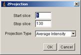 Then a dialogue panel appears. Choose “Average Intensity” from projection Type drop-down menu, and click OK.